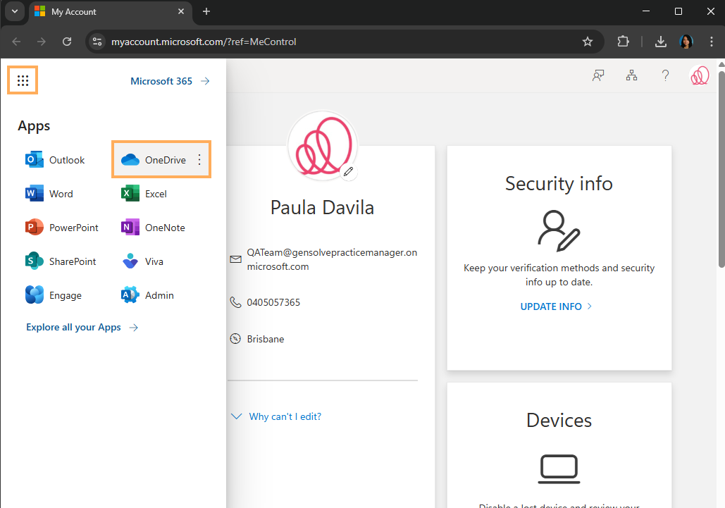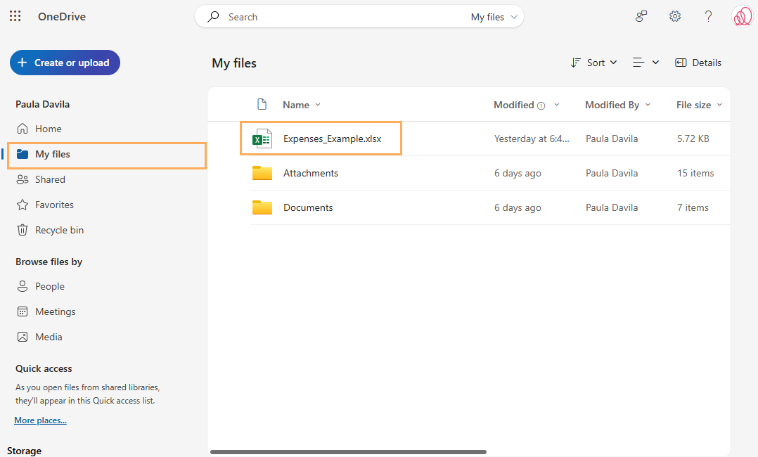 2. Locate the file in OneDrive and check that it is in the same path and has the same name.