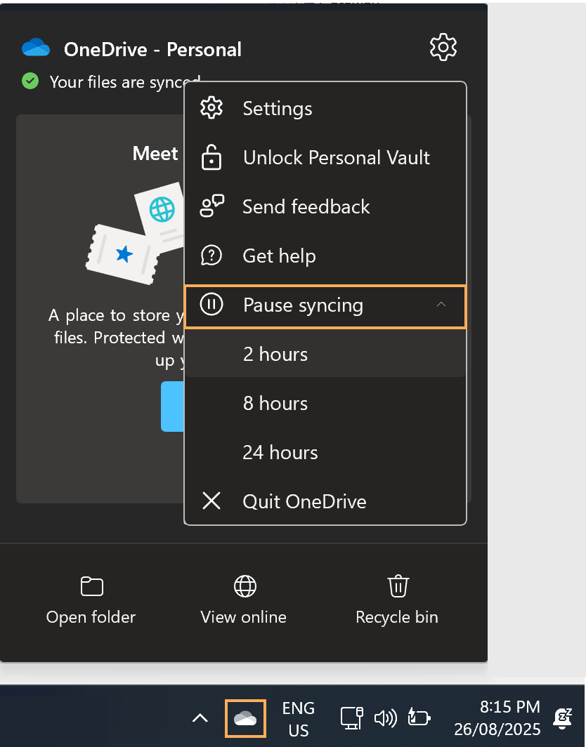 3. Try forcing a manual sync by right-clicking the OneDrive icon and selecting pause syncing for 2 hours