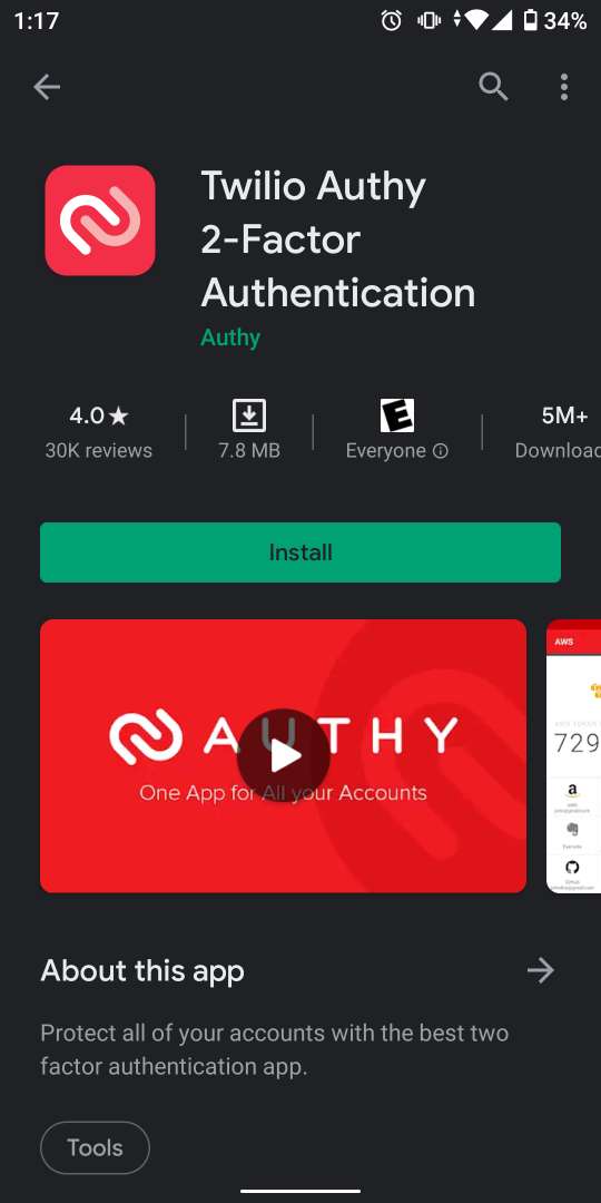 1. Go to the App Store on your mobile and look for Authy >> Download and Open it