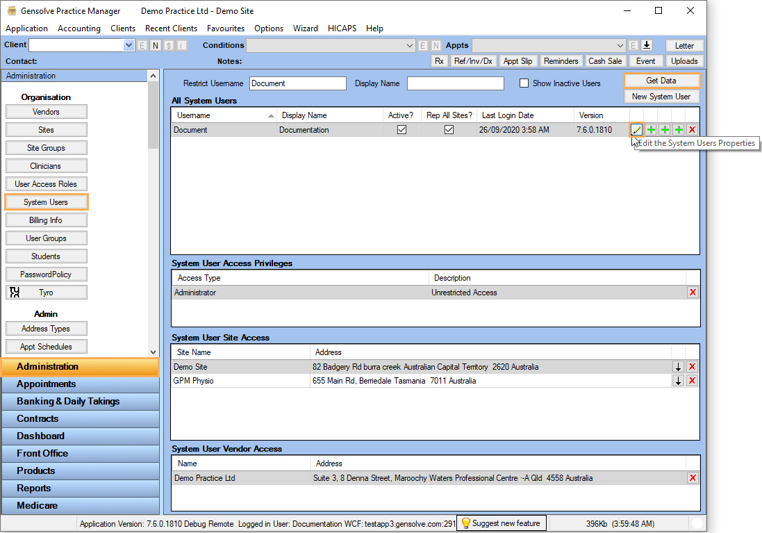 Editing the System User