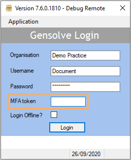 9. Once done, a new field called MFA token will be displayed in the Login window