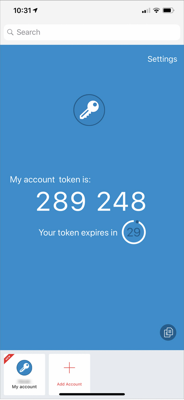 10. Go back to Authy >> A temporary token should be displayed in the account created >> Enter it and Log in