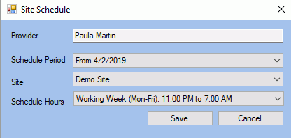 Note: A clinician's schedules need to be created beforehand so that they are available to select in the Schedule Hours drop-down list.