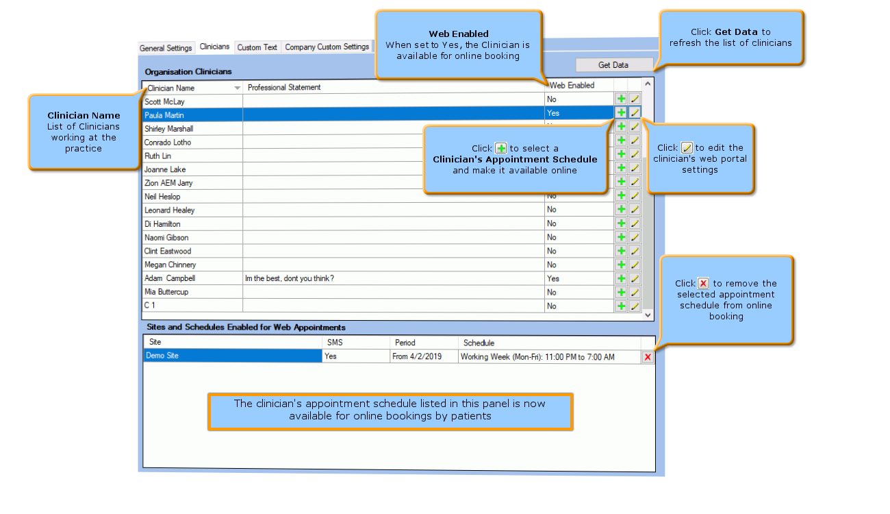 configure the clinicians' appointment schedules