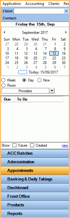 Select the Appointments menu to return to the default view of the Appointment Book.