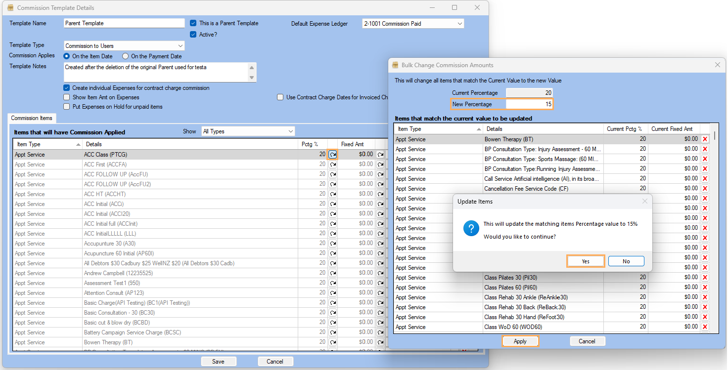 Note: To update the percentage or fixed amount in bulk,