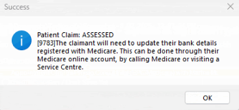 This code indicates that the client has not registered their bank account details with Medicare. Patients should be reminded to register their bank account with Medicare to ensure they receive their Medicare benefits. |