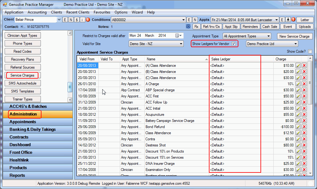 Use the Apply Item Ledgers function to ensure the items used in Appointments, Invoices, Cash Sales are assigned to the correct ledger.