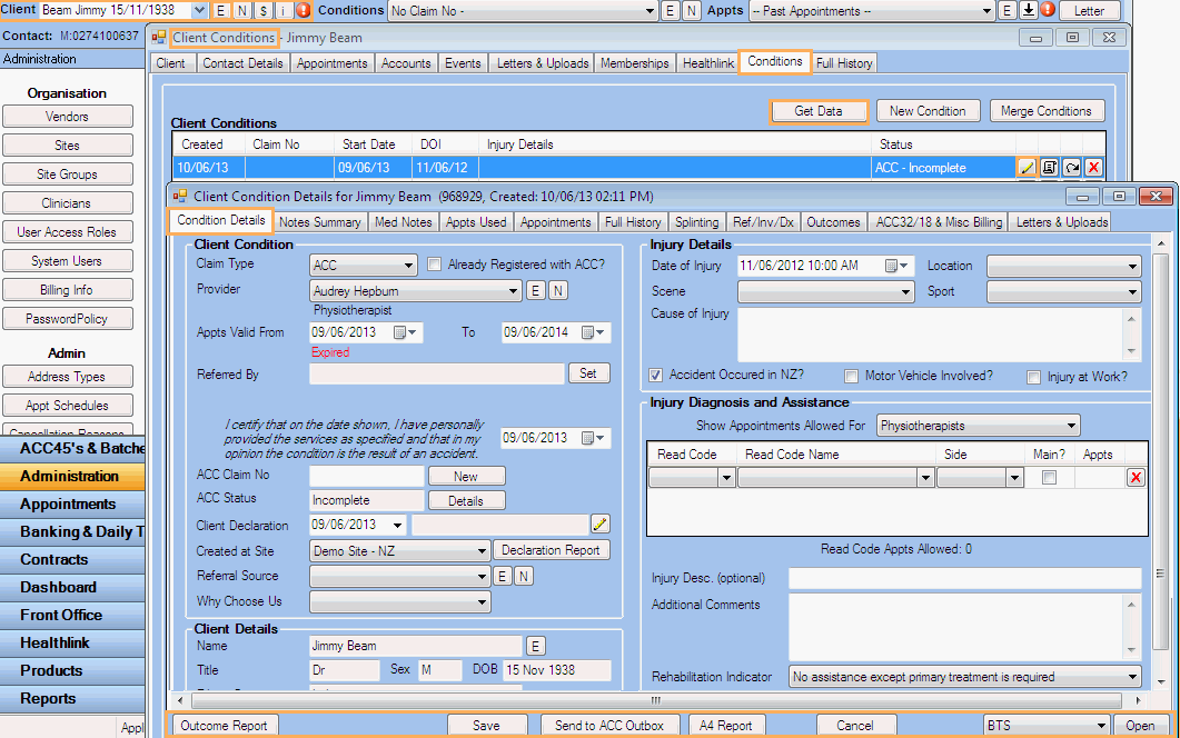 to open the Client Details window - Click on the Conditions tab and click Get Data