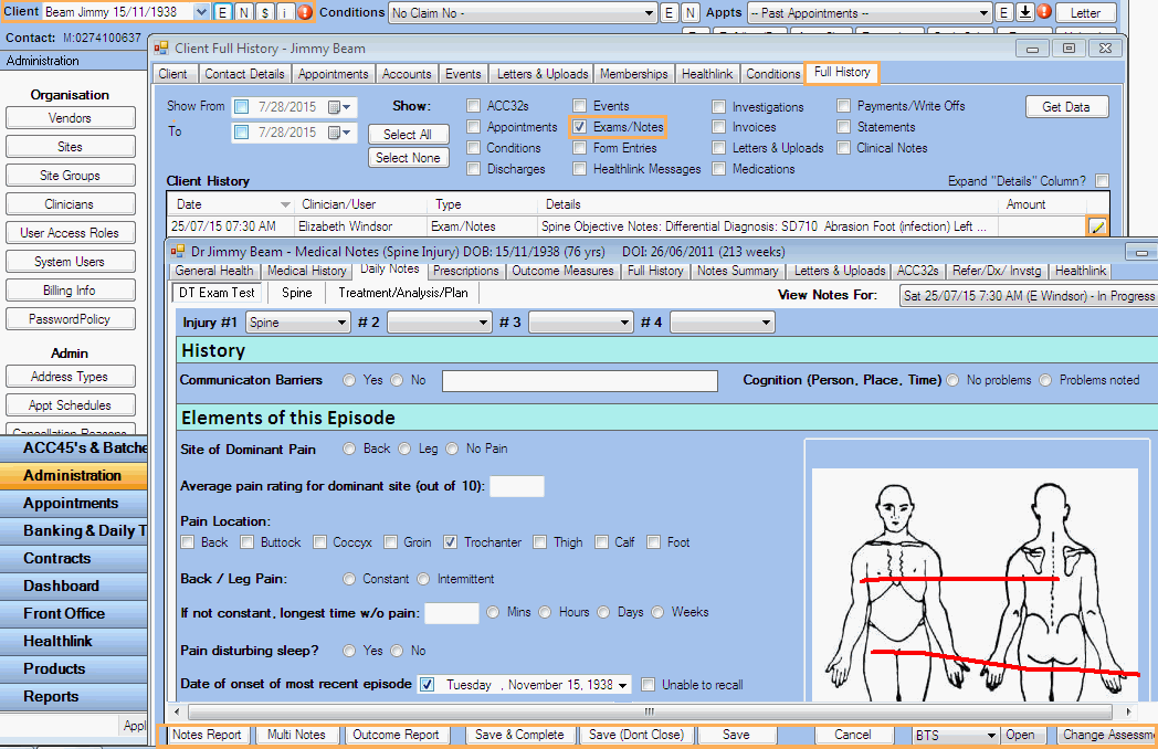 to open the Client Details window - Click on the Full History tab