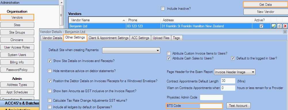 Once you have obtained your BTS Code, you can enter it in the Vendor Settings:
