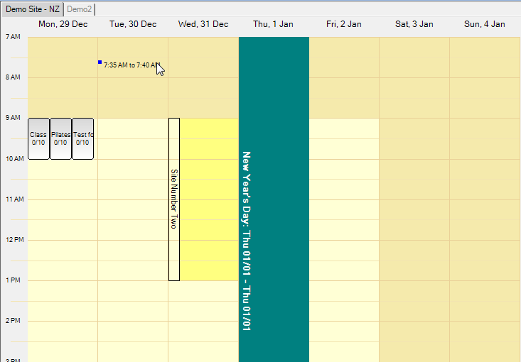 Note: The colour displayed for holidays can be changed in the Site Settings window.