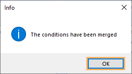 4. A confirmation message will appear after the conditions have been merged. Click on OK.
