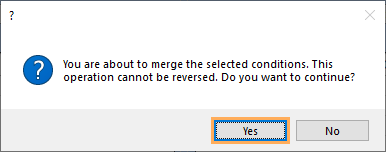 3. A warning message will appear to confirm the condition merge. Click on Yes.
