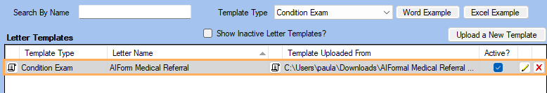 - Go to Administration >> Letter Templates >> Select the Template Type (In the example we will use a Condition Exam ) >> Click Upload a New Template