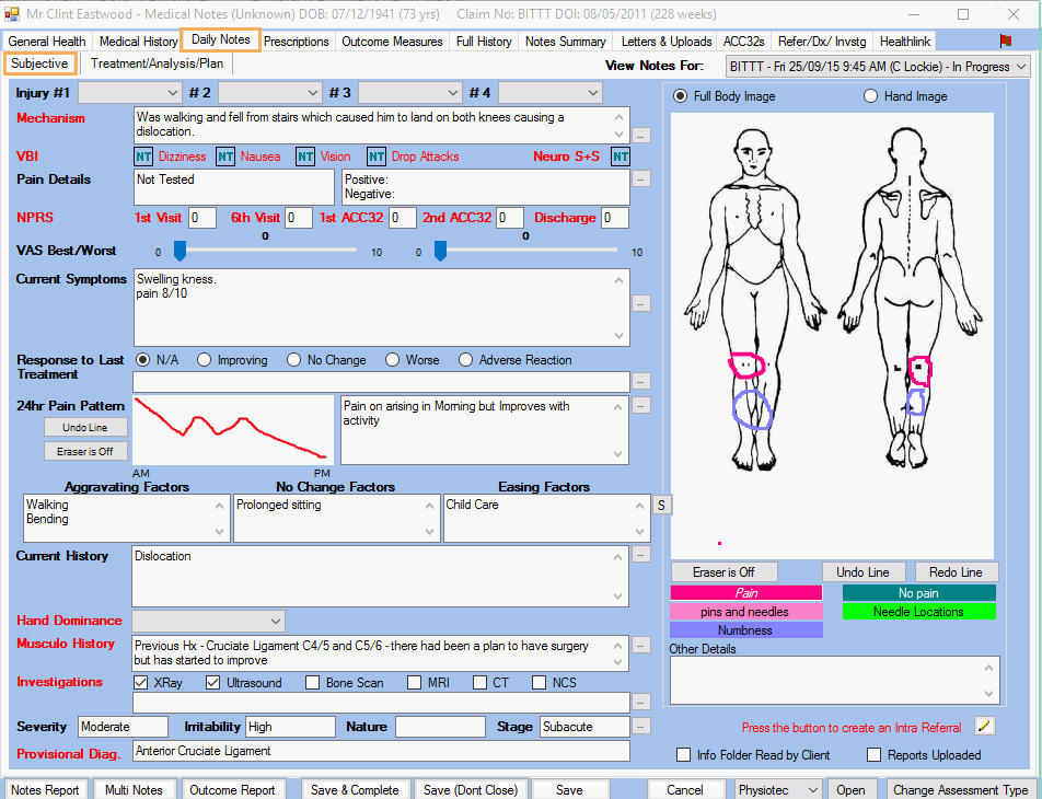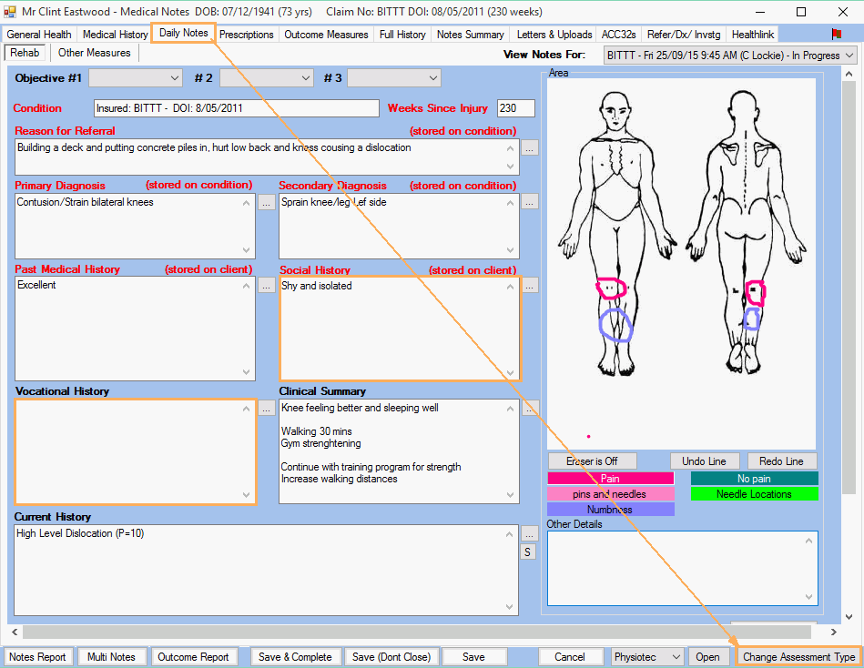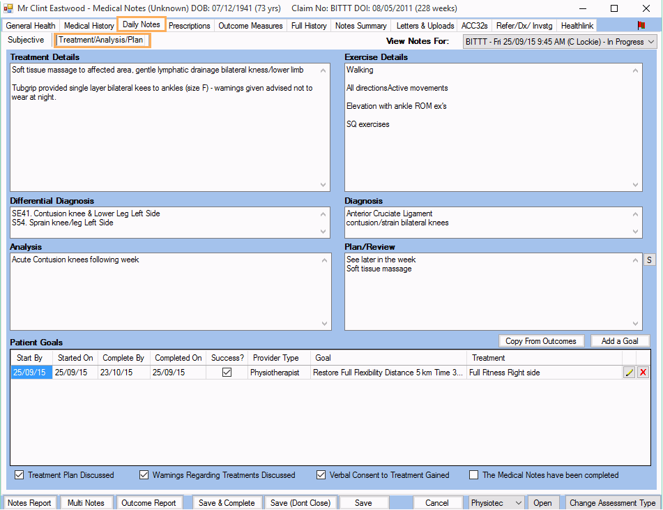 Note: The system fields populated from the Medical Notes are dependent on the Assessment Type selected when entering the exam notes (e.g SOTAP, Rehab, Simple Consultation , etc.)