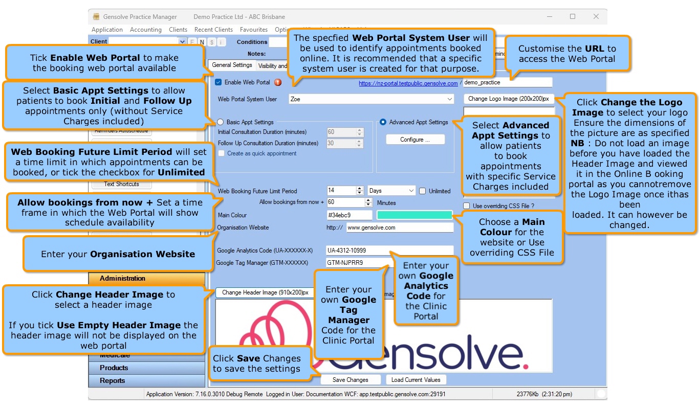 Prerequisites: The Web Booking Portal is an additional Gensolve service that allows your clients to book appointments online. Please contact Gensolve Support if you wish to have this feature turned on.