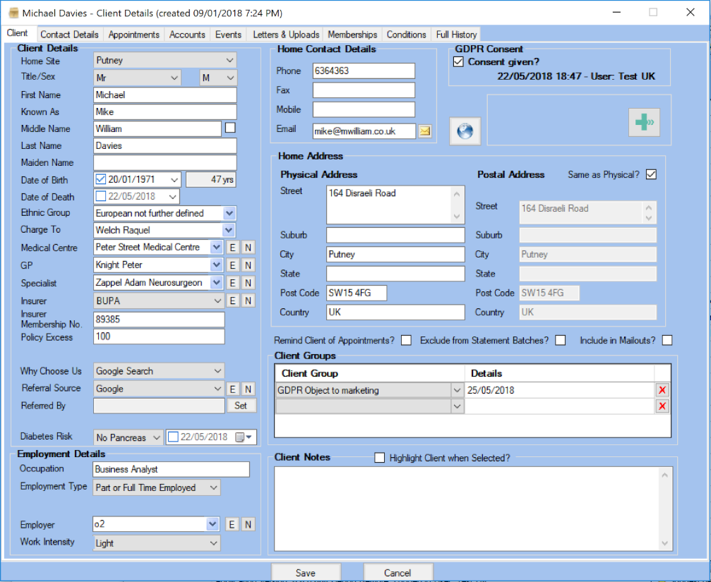 2. Optionally add “GPDR Object to marketing” client group with date of action.