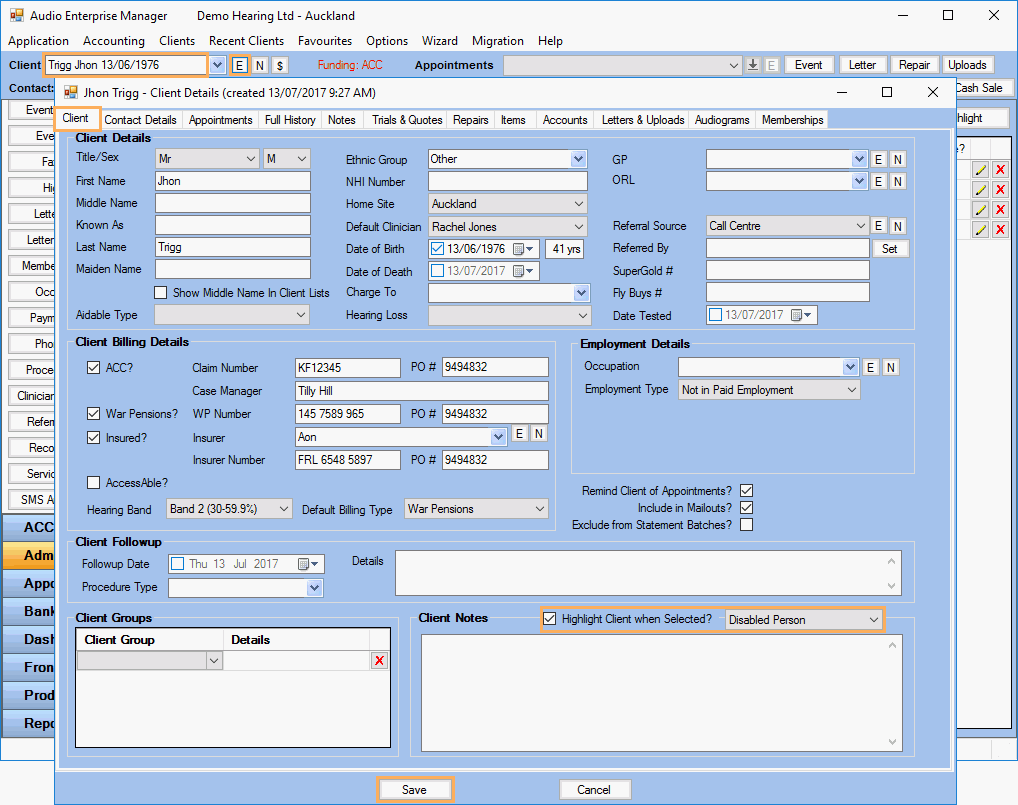 the Client Details