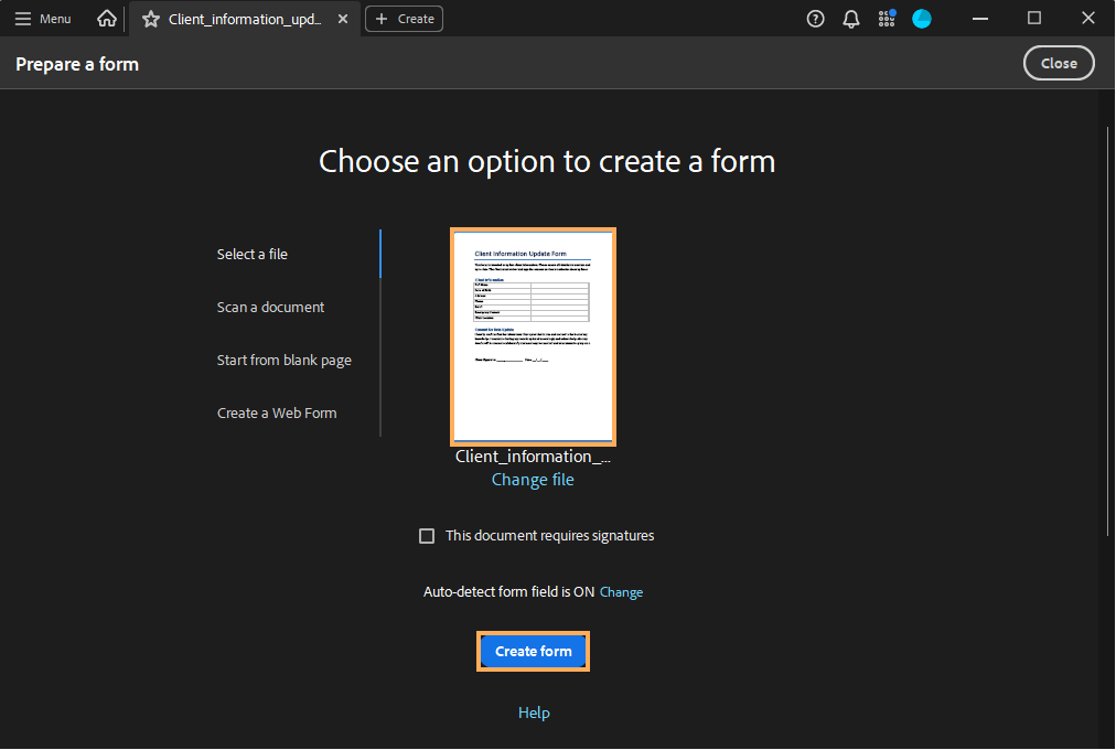 3. Click on Prepare a form.