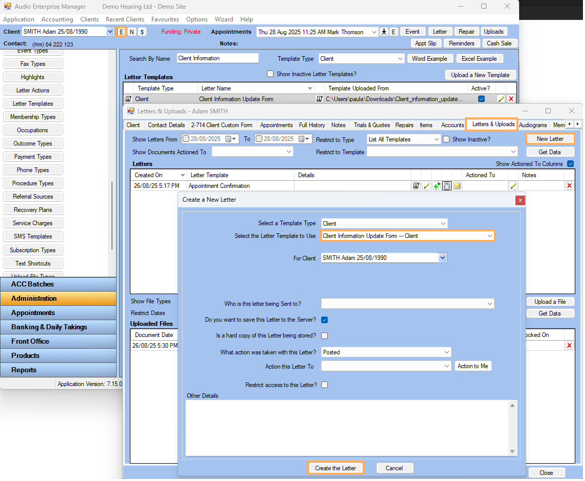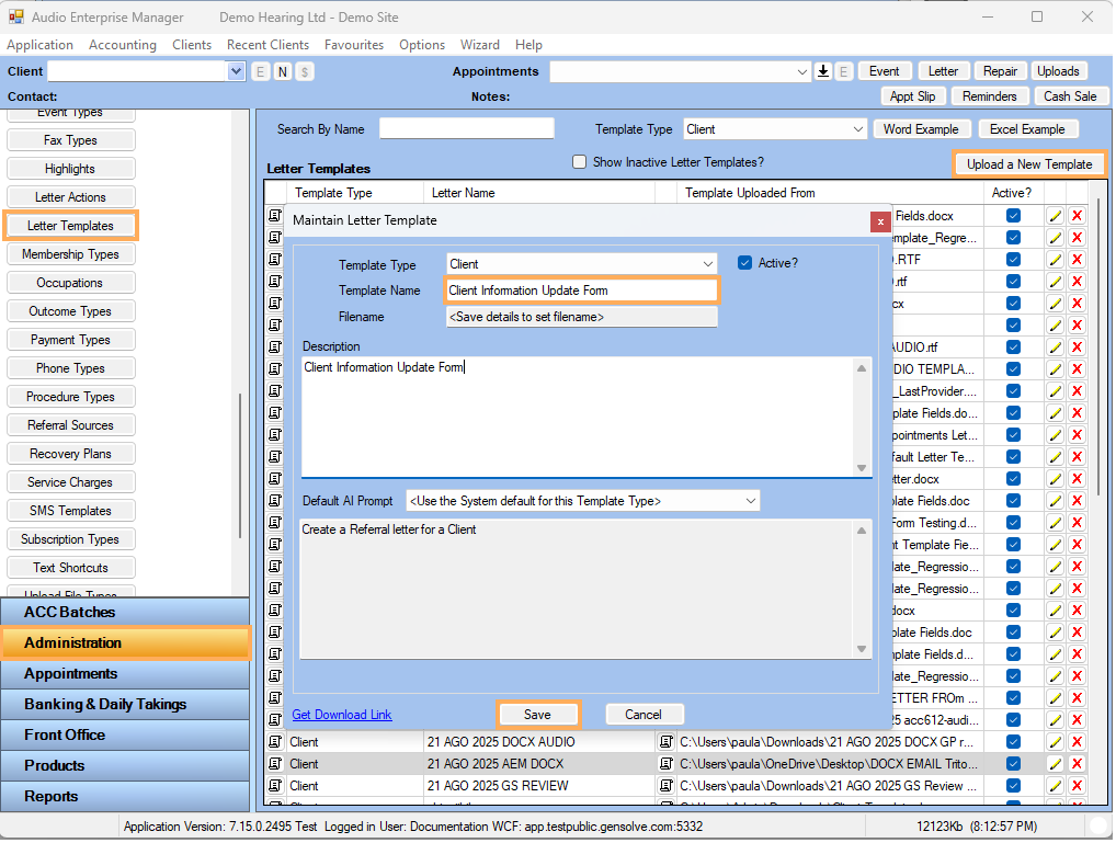 1. Go to Administration >> Click on Letter Templates >> Click on Upload a New Template >> Fill the form >> Click on Save.