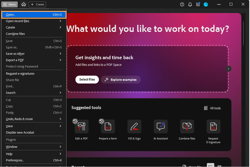 1. Open you PDF Editor >> Click on Menu >> Click on Open >> Select the File and Click on Open
