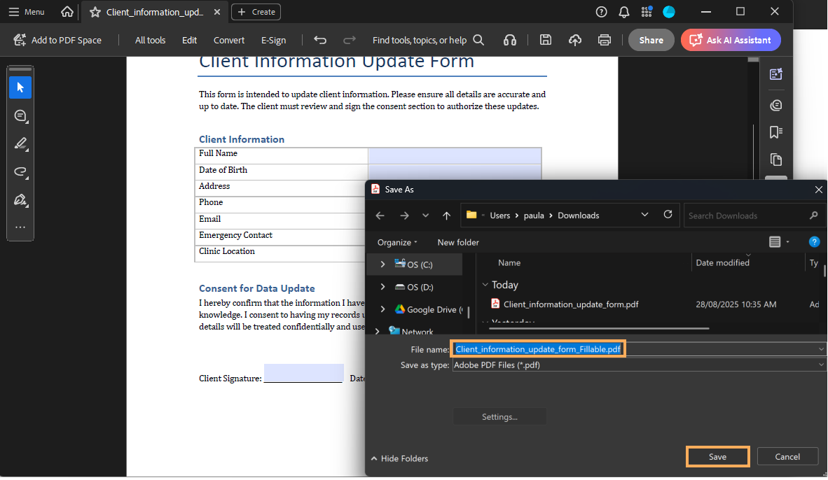 Generate a Client Letter from the Fillable PDF Template
