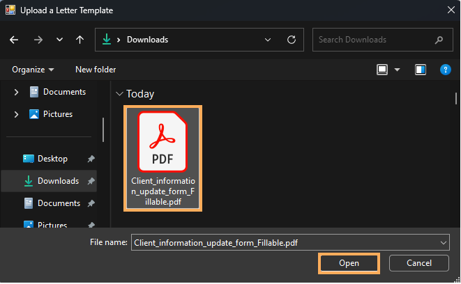 Create a Letter Template by uploading a Fillable PDF