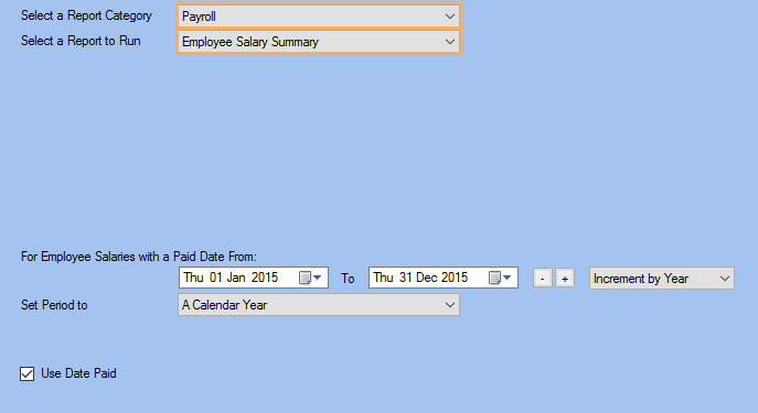 - Then select Employee Salary Summary in the Report to Run list.