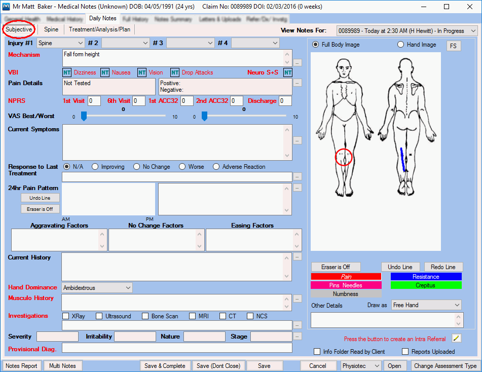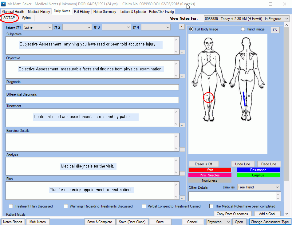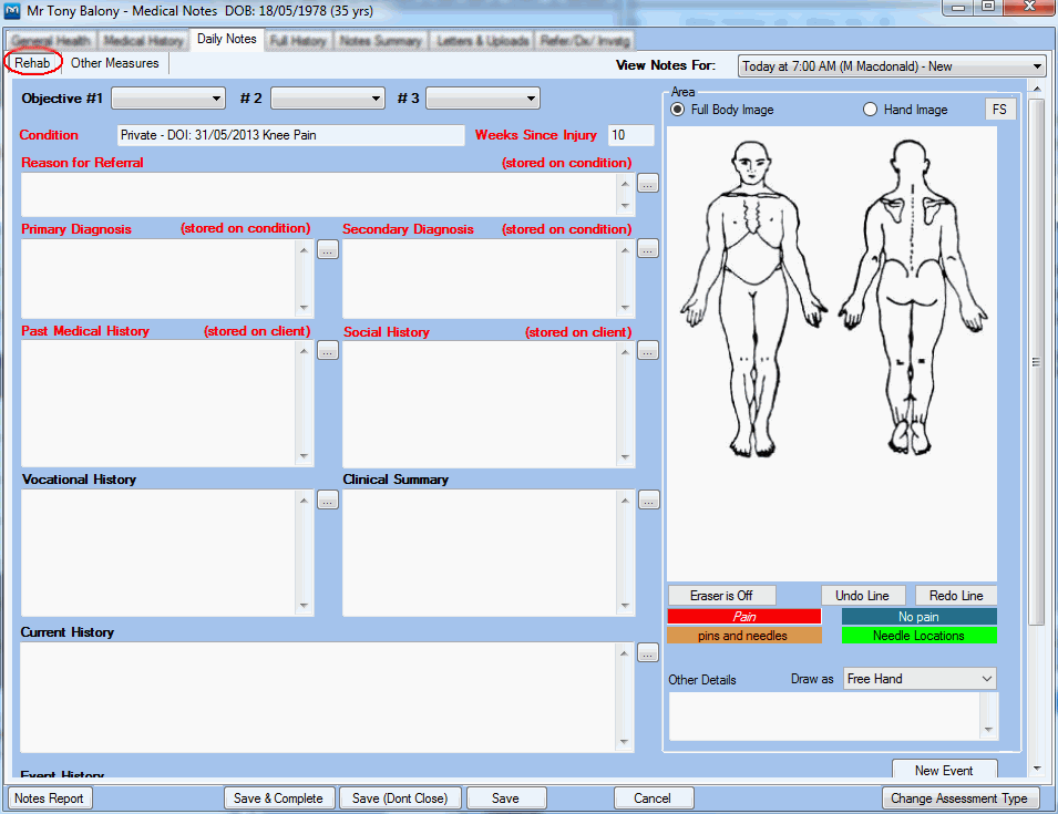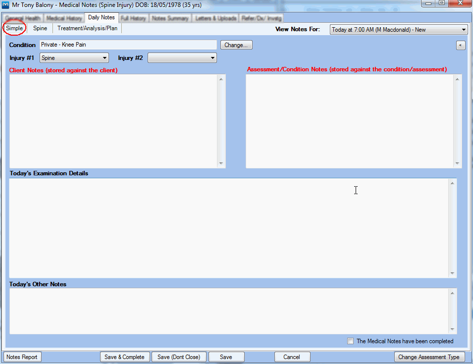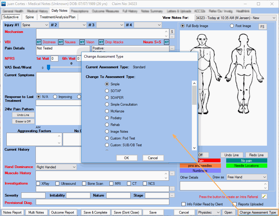 The type of assessment selected will dictate the information to be entered in the medical notes following an appointment: