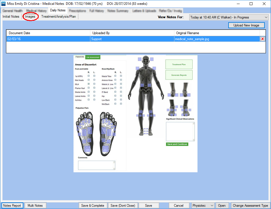 A default assessment type can be defined in the clinician's medical notes settings for an initial and follow-up diagnosis.