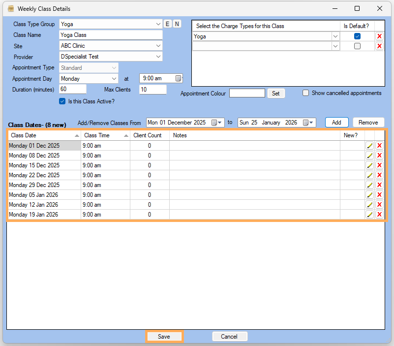 6. Class Appointments will be displayed >> Click on Save