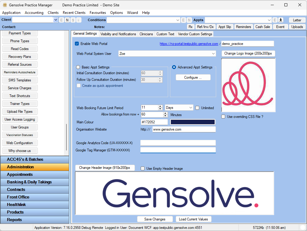 Use GPM to configure the look and feel of the Appointment Booking Web Portal as well as the practitioners/clinicians, the service charges and schedules that will be available for patients to book online.
