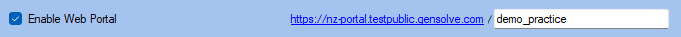 You can customise your own URL to access the Clinic Portal, by ticking the 'Enable Web Portal' box and entering in your clinic name after the first half of the URL address.
