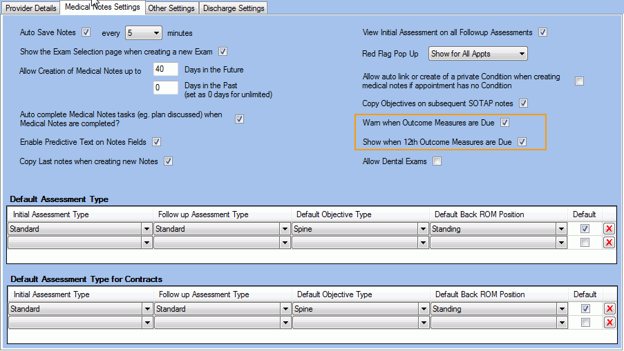 Check the setting Show when 12th Outcome Measures are Due to get a visual indication that the Outcome measures are due on the 12th appointment.