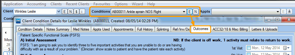 You can also access the Outcome Measures associated with a patient's condition from the Conditions details window.