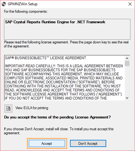 Note: If you do not accept the EULA, Gensolve Practice Manager