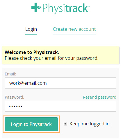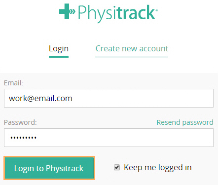 - On the Physitrack website, enter your account details and click Login to Physitrack
