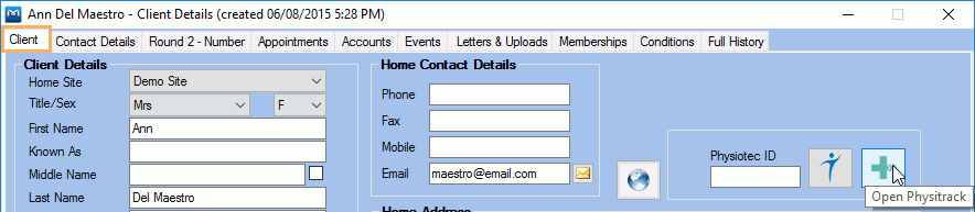 Access Physitrack from Client Details