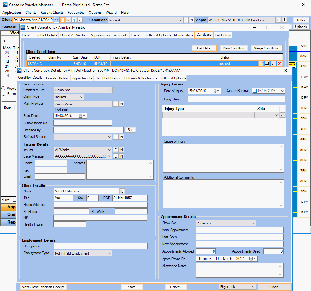 Access Physitrack from Condition Details