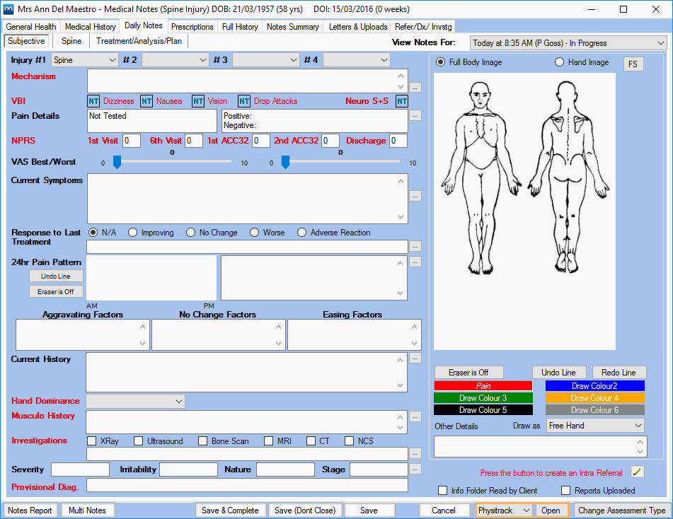 - In the drop-down list at the bottom of the Medical Notes window, select Physitrack then click the Open button